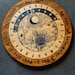 A pendulum board is a tool used in the practice of dowsing, a form of divination that uses a pendulum to obtain answers to questions. The board typically consists of a flat surface with patterns, symbols, or letters, which serve as a guide to interpreting the pendulum's movements.